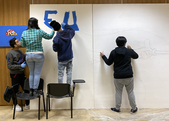 Il laboratorio ha realizzato un pannello artistico in legno di 5x2,5 metri che racconta, attraverso l’uso di un linguaggio fumettistico i valori dell’Unione e i diritti connessi